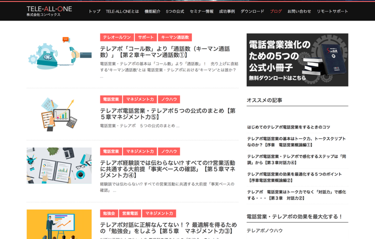 一方で、当社では2011年から『電話営業力強化のための「5つの公式」』(以下、「5つの公式」)という小冊子を発行しておりまして、その小冊子では、当社が電話営業を支援してきた900社あまりの事例をもとに体系化した5つの公式とも言えるポイントを解説しています。これを読んでいただいたお客様からは、もっと深く知りたいとセミナーを申し込んでいただけることも多かったのです」